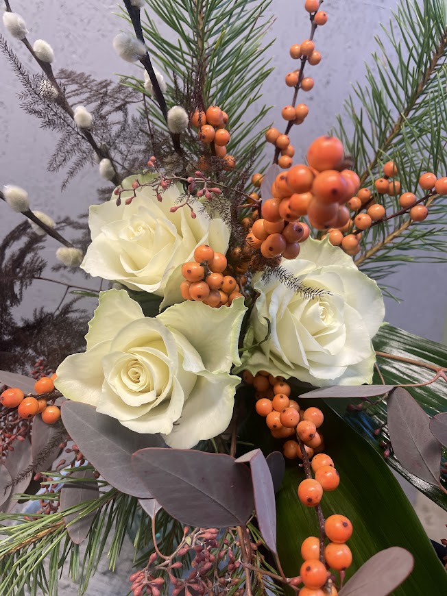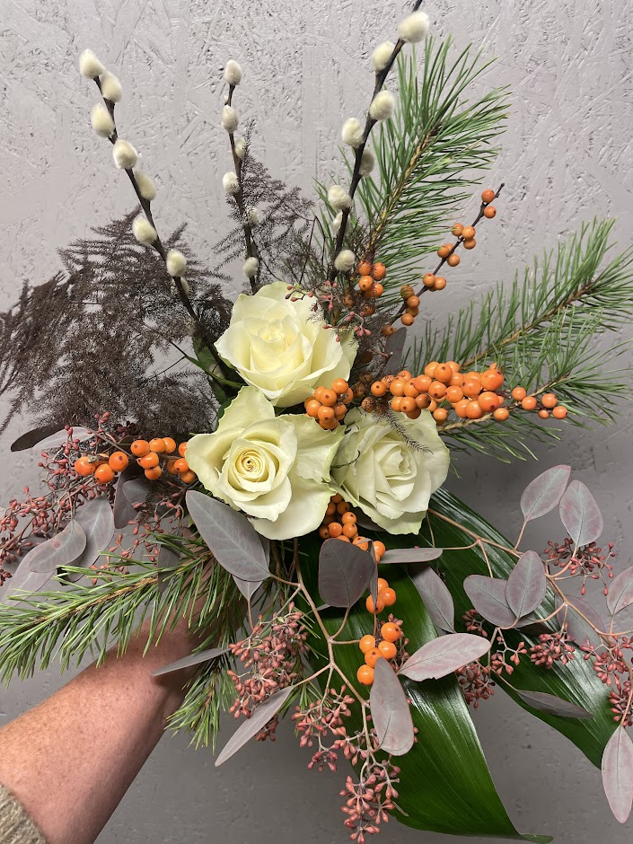 Bilden visar en variant av utförande men till varje beställning skapas en unik bukett utifrån dagens tillgång och floristens känsla. Att floristen väljer motsvarande och liknande blommor förekommer.
